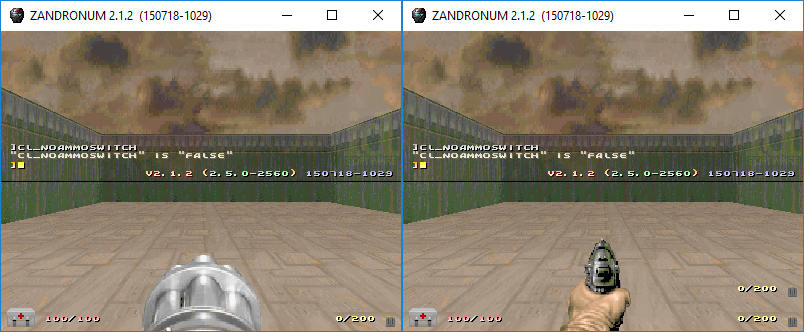 | Description | I was testing some mods and got confused wondering why the client was able to switch over to weapons without any ammo despite having cl_noammoswitch set to false. I investigated the issue further and narrowed it down to cl_noammoswitch not working if the weapons have Weapon.AmmoUse1/2 set to 0 or if the weapons have an AltFire state present in the DECORATE code. It's been this way since forever. It's also broken in Skulltag 98d. | ||||||||
