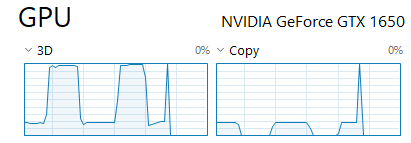 I can confirm that the GPU spike does occur (I use a GTX 1060 with 6 GB) when Zandronum is out of focus. This only happens in multiplayer, both in windowed mode and fullscreen, as you said. If left out of focus long enough, Zandronum might completely freeze and need to be forcefully shut down. In my attachment: periods where the GPU spikes to 100% occur when I alt-tabbed or minimized Zandronum. |