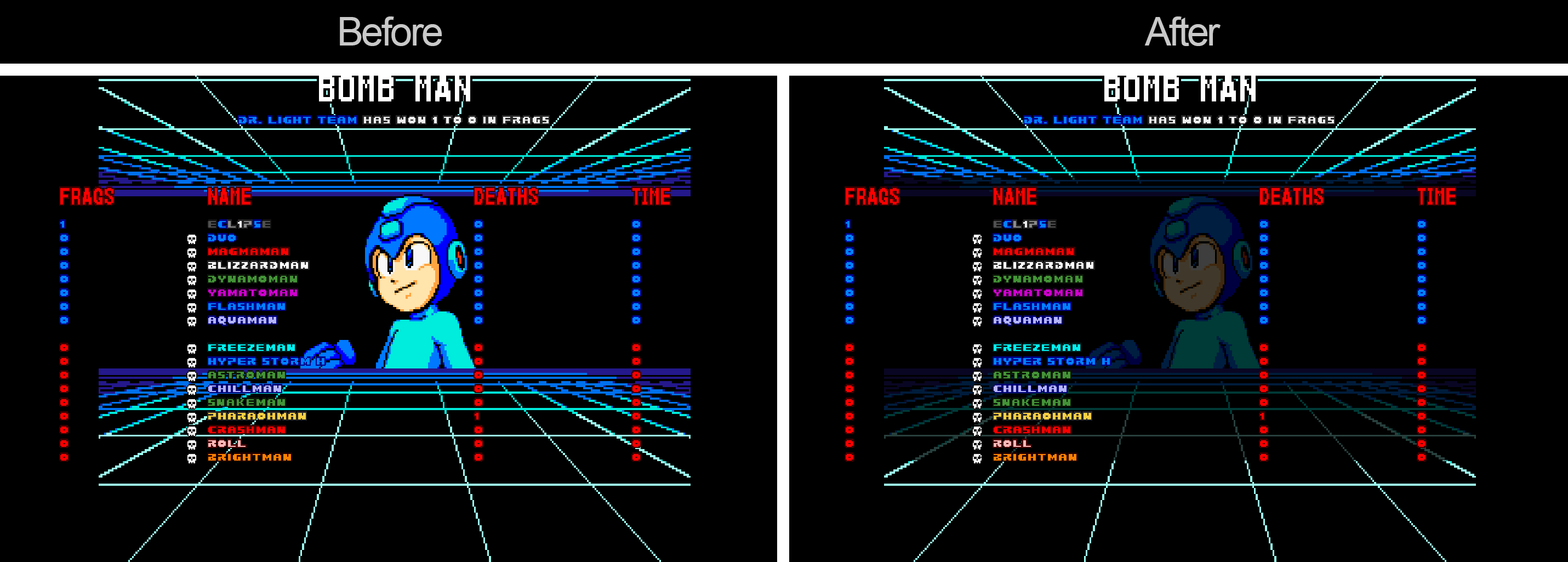 | Description | This is a suggestion that will definitely increase visibility of player stats on the scoreboard after the end of a game on some rather cluttered-looking intermission screen graphics. If possible, please consider. | ||||||||