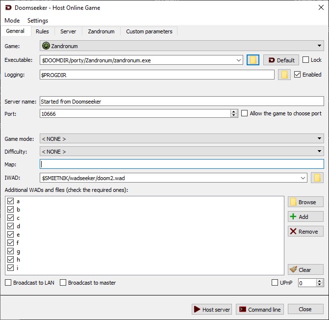 I altered the layout so that the buttons pertaining this list are laid out vertically:'https://bitbucket.org/Doomseeker/doomseeker/commits/5c9f5729c7c672670c0e357feb83e83194b8a016 [^]' See: ds_2022-12-31-1149_creategame.jpg Quote from WubTheCaptain The darker background depends on the OS theme. Windows 10 doesn't do that. The elements in the Rules tab are placed inside a group box. I first tried to do the same here, but the group box requires some padding to look fine, and this extra padding was squashing the list too much. It didn't look good. Laying out the buttons vertically to the side of the list should achieve the same grouping effect without stealing the precious real estate. I've also made the list respond to the delete, minus and plus keyboard keys. |