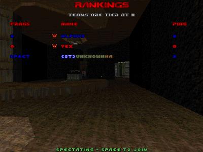 1. Start a TDM server with sv_maxplayers set to 0. 2. Connect a client to the server. 3. "join" in the console. 4. "changemap map01" in the server console. 5. "sv_maxplayers 1-32" in the server console. |