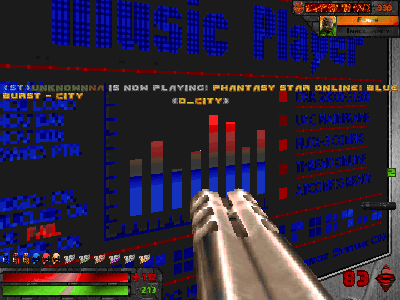 > Try using it in a map, with linedef triggers, rather than puking it. Also, make sure you're testing this online. FYI, I did that before I uploaded the example WAD. > Just put the contents of the PK3 folder in a zip, and load that with Skulltag. 344 MB downloaded. I'm not doing that again. Anyway, I managed to find your room and the music changer seems to work. I select a track with +use and play it with +attack. |