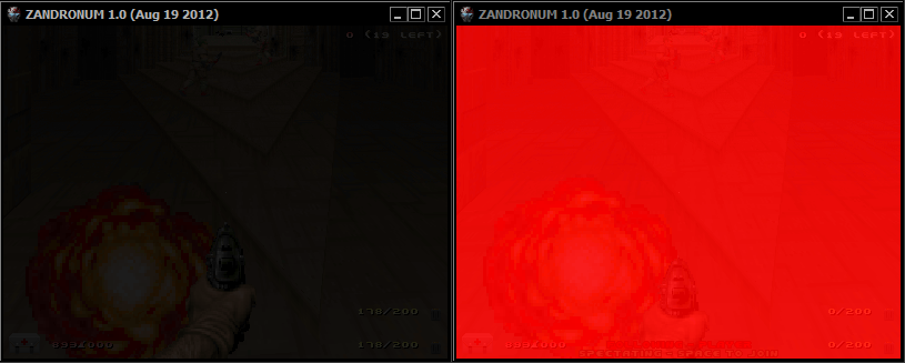 | Steps To Reproduce | 1. zandronum.exe -file morph_bug_test_10.wad -host +sv_cheats 1 2. Connect 2 clients to the server. 3. Join the game with client A. 4. "give orcaswitch" in the console with client A. 5. Coop spy on client A with client B. 6. Take some damage with client A. Client B will see the normal pain color. | ||||||||