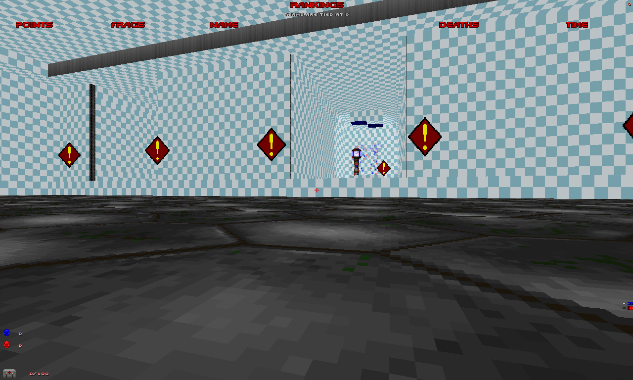 | Steps To Reproduce | 1. zandronum.exe -file skulltag_actors.pk3 skulltag_data_126.pk3 spawnroom_01.wad +ctf 1 +map map01 2. "kill" in the console. 3. Press +showscores. | ||||||||
