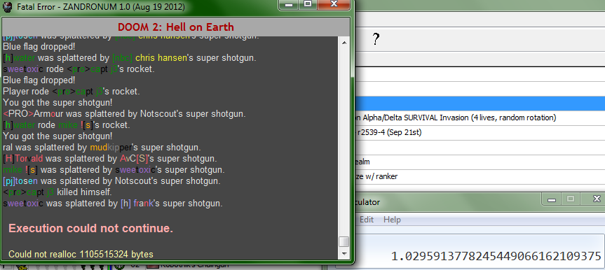 Some players (me included) are getting an error message in the startup window: "Execution could not continue. Could not realloc 905969664 bytes" |