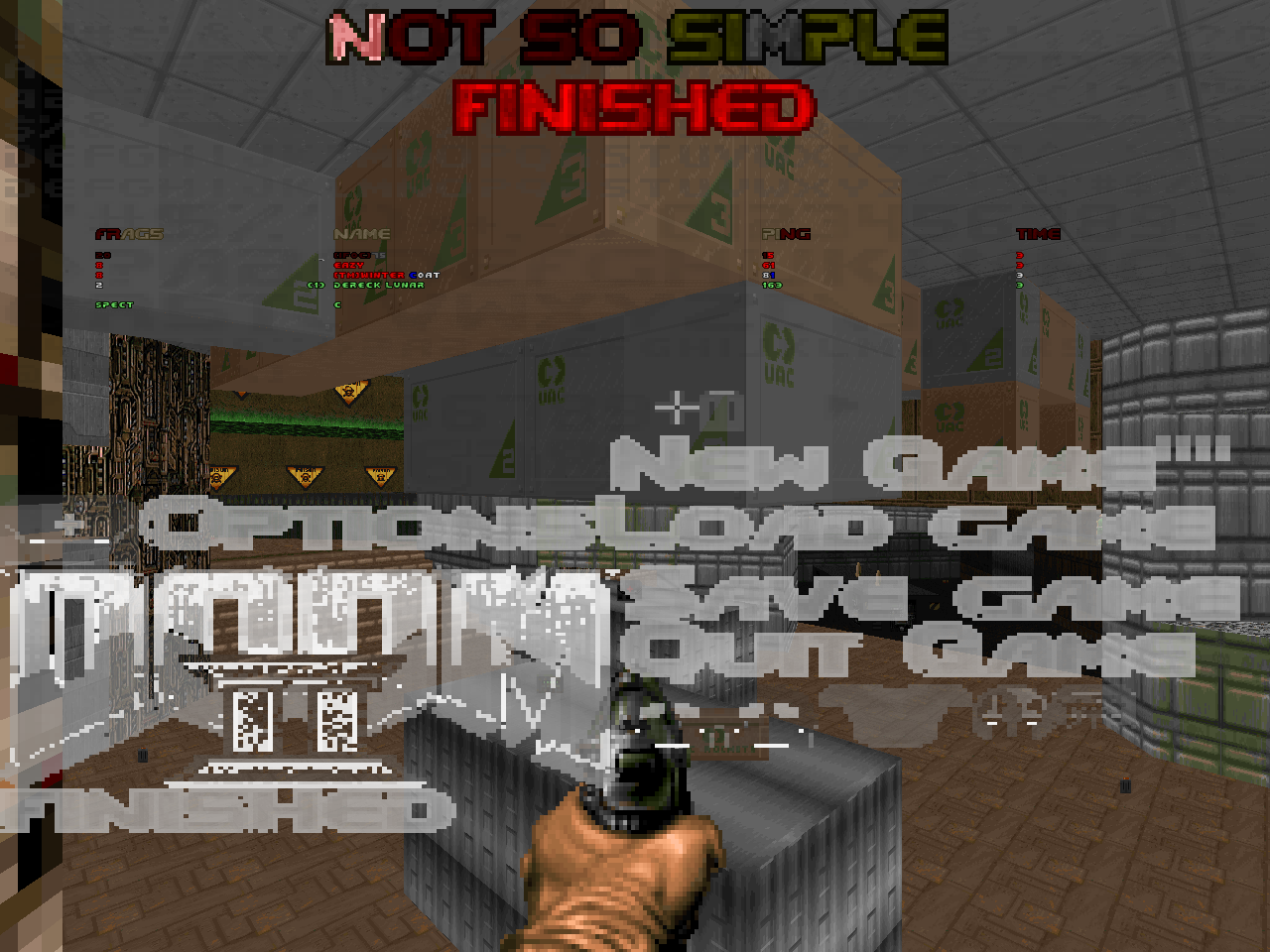 | Description | I tried playing fullscreen for the first time today in years, I ran across this strange glitch after a map change. It seemed like only the text and menu were messed up, the "NOT SO SIMPLE" text remained from the intermission screen, and a ghost of the main menu remained after I went back into the game. Also, when I typed a chat message, it wouldn't show what I was typing in the typical place, instead it would change the color of characters in the scoreboard (that also didn't go away) while I typed. | ||||||||