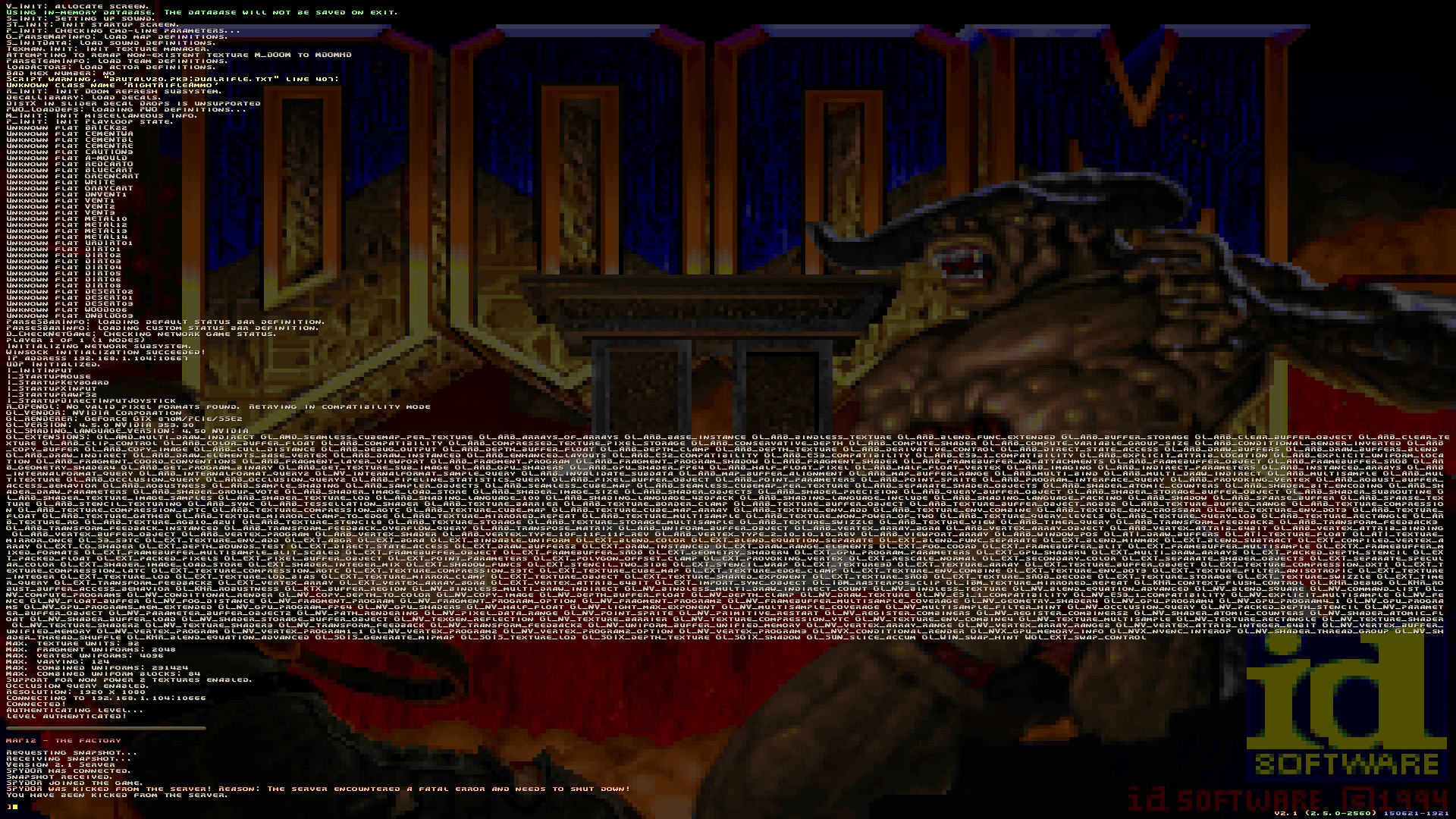 | Description | A particular set of circumstances can be recreated which causes any version of Zandronum to crash with a Very Fatal Error when running any version of Brutal Doom and MAP12 from the "Memento Mori" megawad for Doom2. | ||||||||||||
