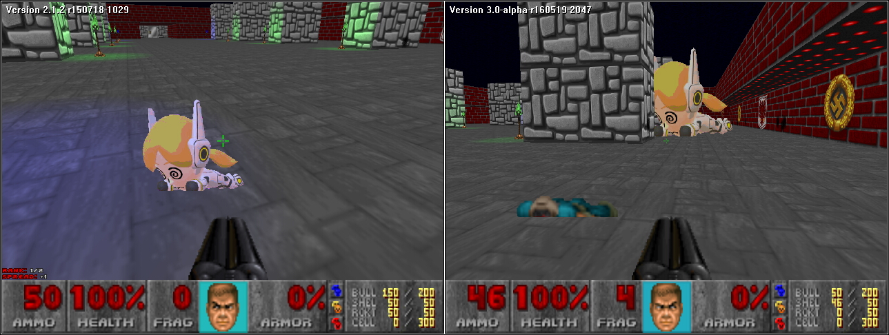 I can't manage to reproduce the problem unless I try with the bot method (and I can't manage to add a bot with that skin in zdoom). What's supposed to happen with the consoleplayer? [edit] Now I understood. I need to respawn and see the corpse (only if I'm in multiplayer mode). |