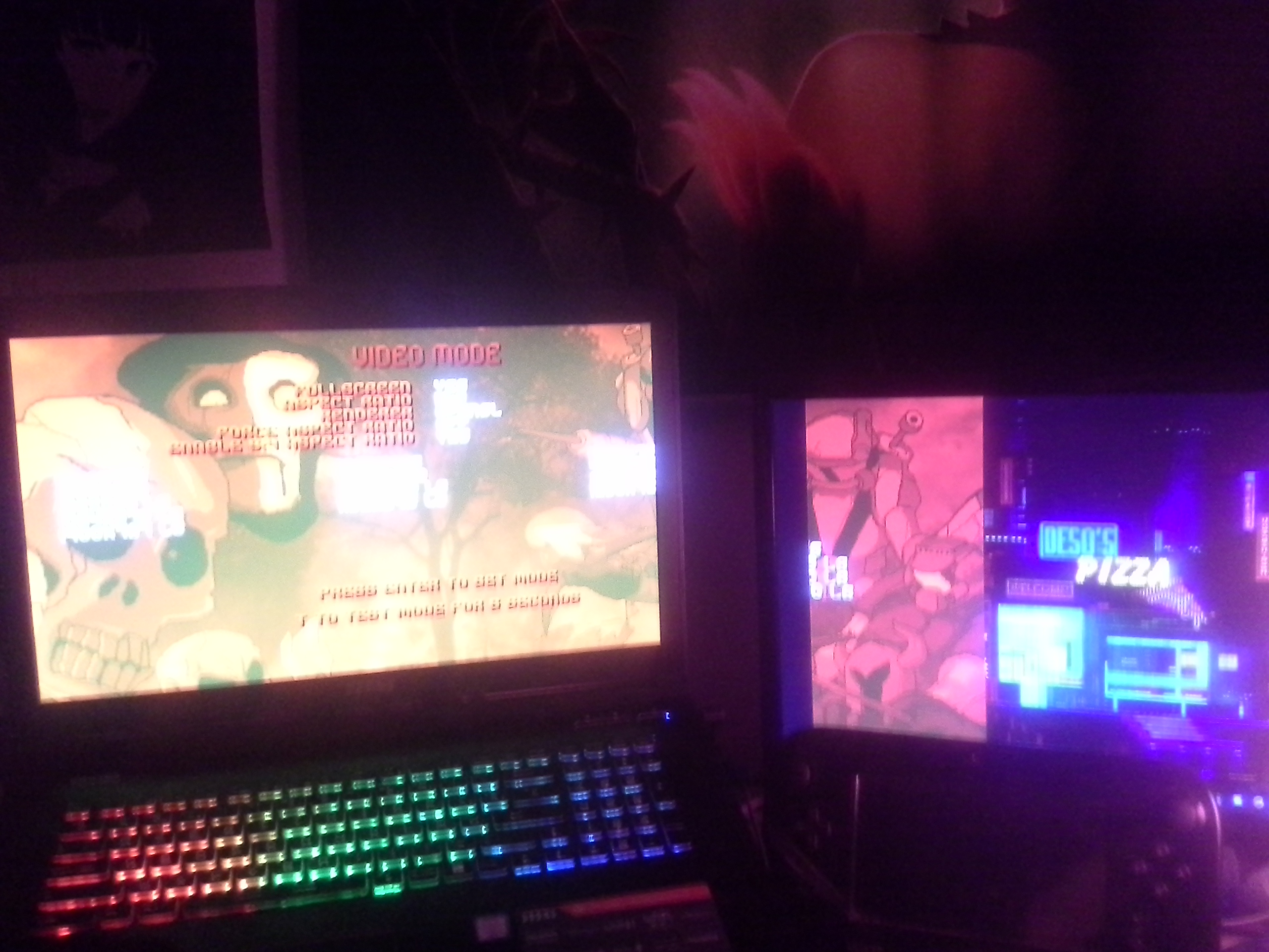 | Description | The only problem I have now with 3.0 is that: whenever I try to set my video resolution higher than 1280x720, the screen gets all weird, half zoomed in and is across 2 screens at the same time. Do note, in reality; the screen is zoomed in as well, which (for some reason) doesn't display in the screenshot. I'd have to take a photo with a camera to show you the exact result. Funny thing is, in singleplayer/offline mode; I can pick any resolution I want. I already talked with jdagenet/jason about this, tried the vid_adapter thing in console (resulting in: vid adapter is 1). I also checked the appdata for doom explorer and the files are exactly the same as in my zandronum directory folder, so... I have no idea what's going on. In 2.1.2, it works fine and I've always used 2 screens. Well, not always, but for a while now (during 2.1.2) and that worked just fine. I get the same result (as in, the good result) in singleplayer with 3.0. Not to mention, if I unplug my second screen, it's still all zoomed in until I go back to the 1280x720 resolution. | ||||||||