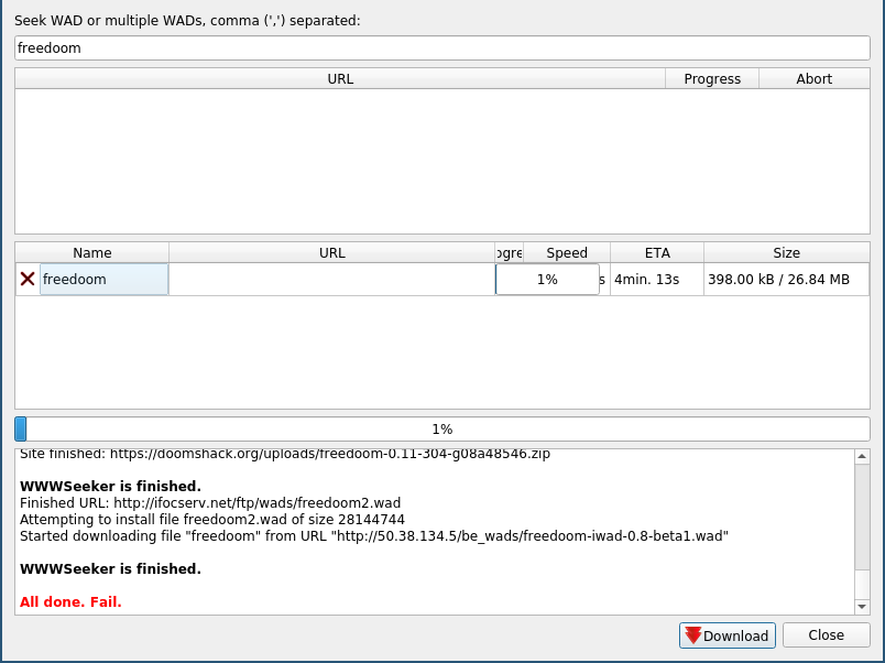 | Summary | 0003707: The progress bar of the WAD(s) currently being downloaded in Wadseeker overflows past the narrow column width and overlaps | ||||||||