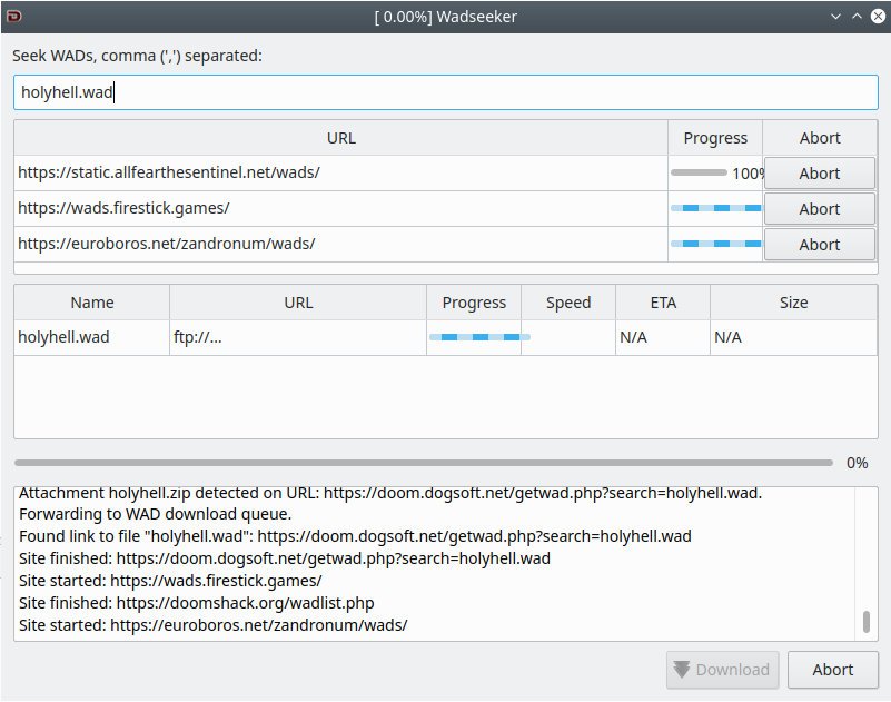 | Summary | 0003707: The progress bar of the WAD(s) currently being downloaded in Wadseeker overflows past the narrow column width and overlaps | ||||||||