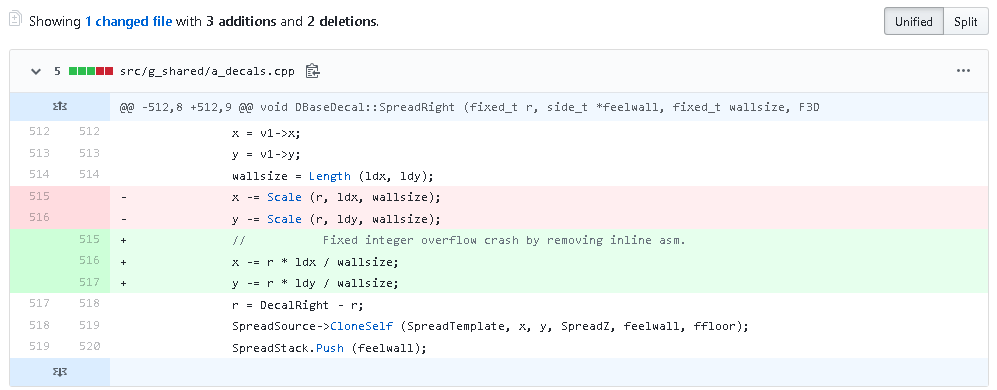 | Description | Zandronum 3.0.1 - crash - Integer Overflow, due to the calculation of decal coordinates in assembler assest. | ||||||||