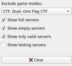 | Description | There's options to show/hide full servers, empty servers, valid servers, and testing servers, but none for password protected servers. | ||||||||