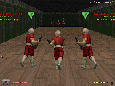 Ok, so the new default behavior from here on is that no ally icons are drawn above yourself and any allies you spy on. Does this feel like the most right way to you? I have to say, I kind of liked it drawn all the time above your own player after testing the new behavior a bit. It feels a bit empty when it's suppressed from the chasecam now, especially for coop/survival and teammodes. There's a lesser sense of unit cohesion when it's not rendered all the time above yourself and other friendly players being spied on. See the attached screenshot. The icon is drawn above all your teammates except yourself. Having it drawn all the time combined with a feature like'https://zandronum.com/tracker/view.php?id=4292 [^]' would perhaps make it feel a bit less empty with ally icons enabled. I don't know, maybe it's just me. However, if the new behavior feels the best for you, I suppose it's ok too and we'll mark it as resolved. I just want a confirmation first. |