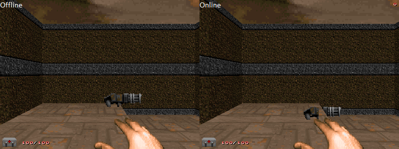 First let me say that as far as I can say the only difference between the online and offline behavior is where the client displays the weapon. The actual position on the server should be the same online and offline. Actually, the client even spawns the weapon at the correct position, but it thinks that it is in the lower sector and thus on the client the weapon falls down to the lower sector's height. Furthermore, the offline behavior for the initial spawn and respawning is different even in ZDoom and I'm pretty sure that this ZDoom problem also causes the client side display problem. So it's not really a good idea to find a solution for the client side display problem without resolving the ZDoom issue first. > I understand, but don't underestimate the importance of having this fixed. Well, isn't this broken since forever? |