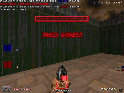 | Steps To Reproduce | 1. zandronum -host -file countdown_deathcount_02.wad +ctf 1 +pointlimit 1 +sv_maprotation 1 +addmap map01 2. Connect 2 clients to the server and join both teams. 3. Capture a flag and score. Only the subtext is displayed. | ||||||||