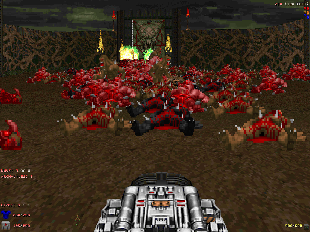 >Sure, we can optimize the position of the counter. I'd like to have a position that is independent of the game mode though (survival doesn't have the wave/archvile counter invasion has and I'd like sv_maxlives in the future to be usable with TLMS which has the team score counters). Can somebody make a sketch where exactly the counter could go? I kinda like how the Invasion hud shows on top of the screen.. Maybe put it somewhere up there?? Not sure how that would look or work out. |