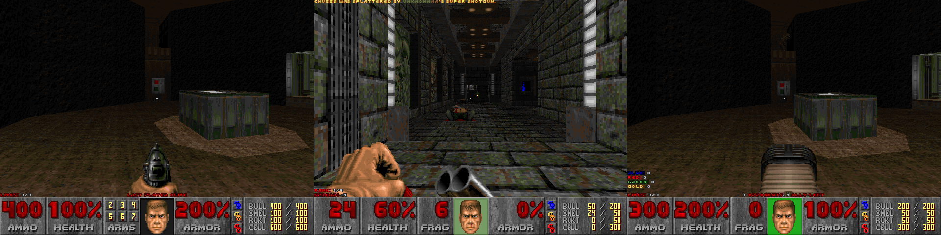 IMHO, I think it would be a bit easier-on-the-eyes (less eye strain) if the lives counter displayed the amount of lives in white/gray colors instead of red (at least when the Doom status bar is used). It would also make the HUD consistent with the HUD in the other game modes, e.g., the Rank/Spread counters in DM mode. I made a few test sketches. BTW, why is there space between the the numbers and the "/" character? It currently displays "Lives: x / x" instead of "Lives: x/x". I suppose the former looks better. |